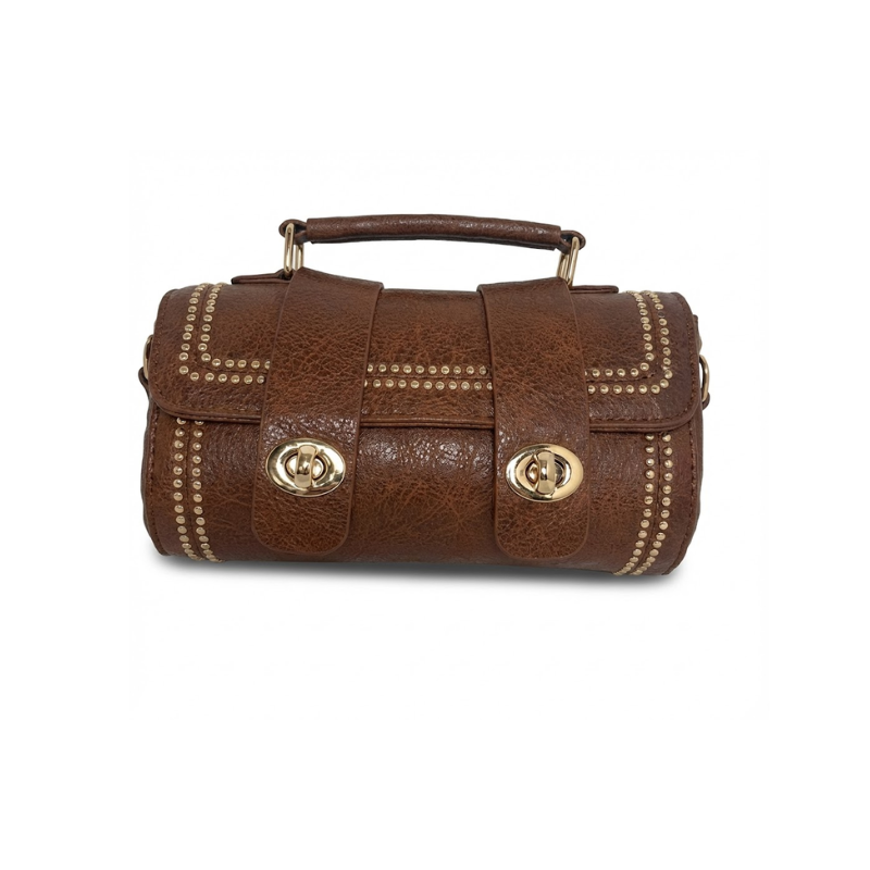 Compact vintage-style cylinder handbag. Trendy and lightweight for casual outings.